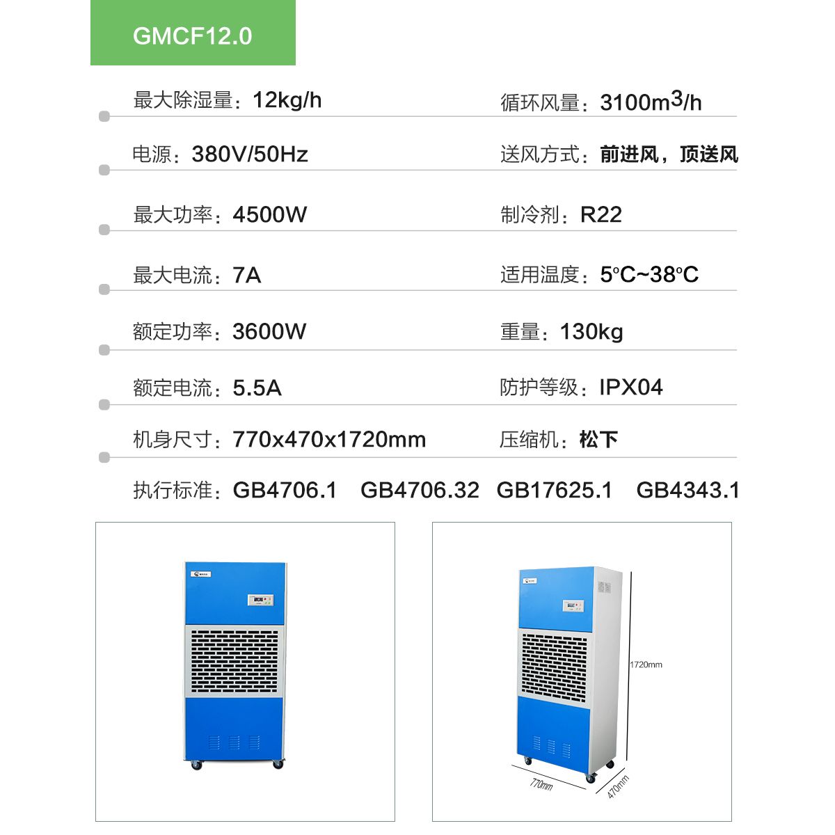 除湿量:12kg/h