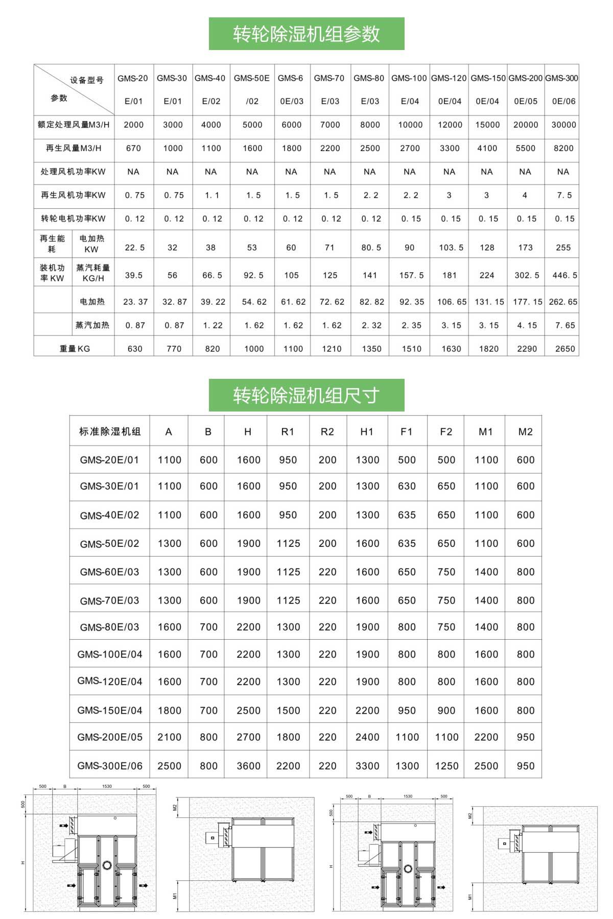 变成干的、热的空气;并通过处理风机将干风送出。同时在再生区域,另一路空气先经过再生加热器后,变成高温空气(一般为100~140℃)并穿过吸湿后的转轮,使转轮中已吸附的水分蒸发,